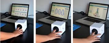 Fig. 1.a modul de lucru al aparatului BioWell Fig. 1.b fotografiile (beogramele) obținute cu aparatul BioWell, care arată dispunerea energiei în vârful degetelor – și corespondența diferitelor sectoare de pe fiecare deget cu diferite organe și sisteme.