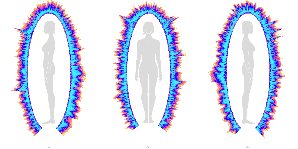 jurul unei siluete umane, arată modul în care sunt zone cu exces sau deficit de energie. Cu cât