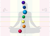 Fig. 2.3 prezintă mărimea și alinierea centrilor energetici (Chakre – conform medicinei indiene