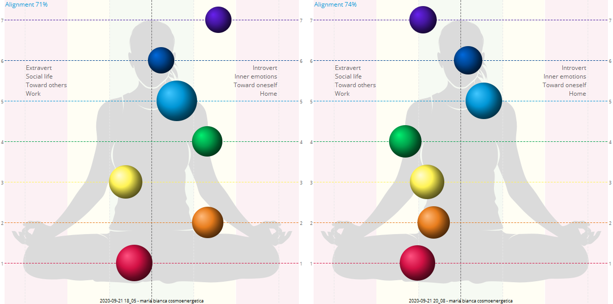 Fig. 5 Poziționarea centrilor energetici (chakre conform medicinei indiene ayurveda) se îmbunătățește, indicele de simetrie crește de la 71 la 74%).